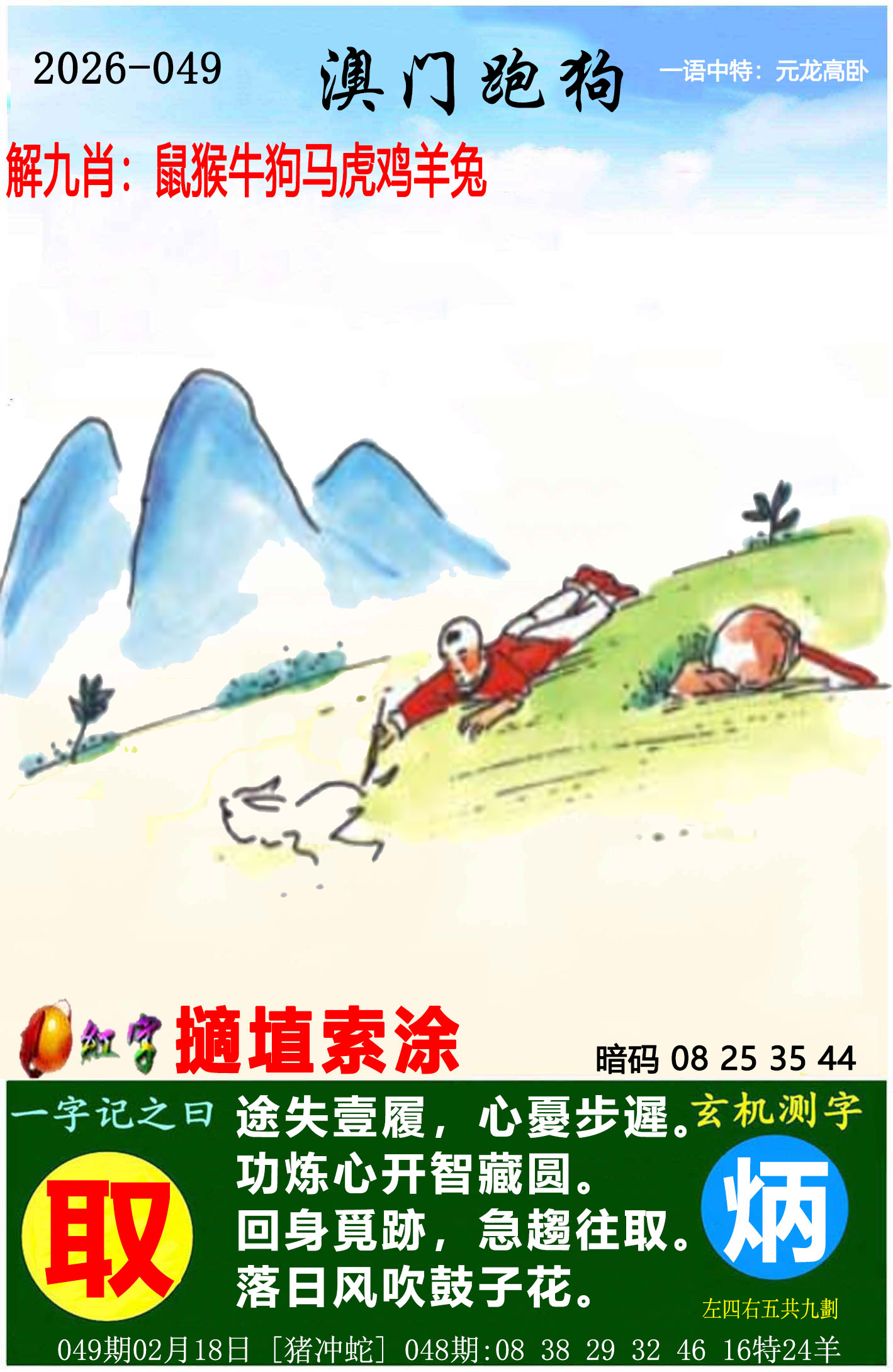 | 038期:九肖 | 马猴虎鼠兔鸡狗牛蛇 | 鼠42中 |