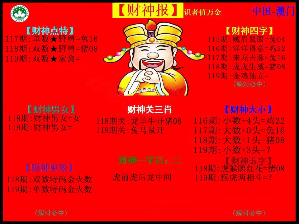 119期:澳门六合彩彩圖信封【红财神报】每期自动更新